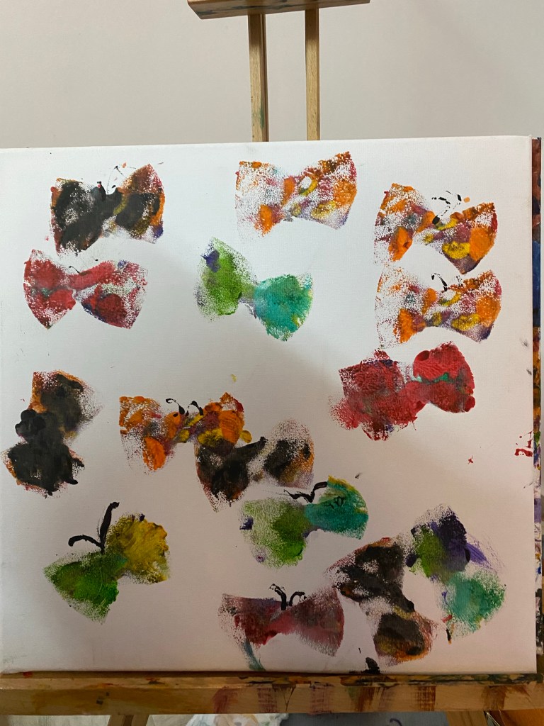We also freely painted and learned pour painting and sponge painting with different paint colours.