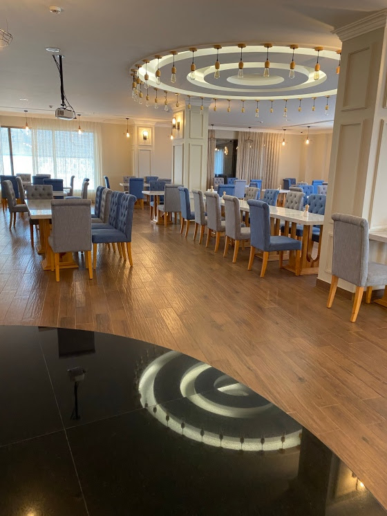In the image: The cafeteria and dining area at Tripper inn hotel